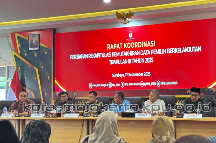 KPU Kota Mojokerto Hadiri Rakor Pemutakhiran Data Pemilih Berkelanjutan Triwulan III 2025 di KPU Jatim