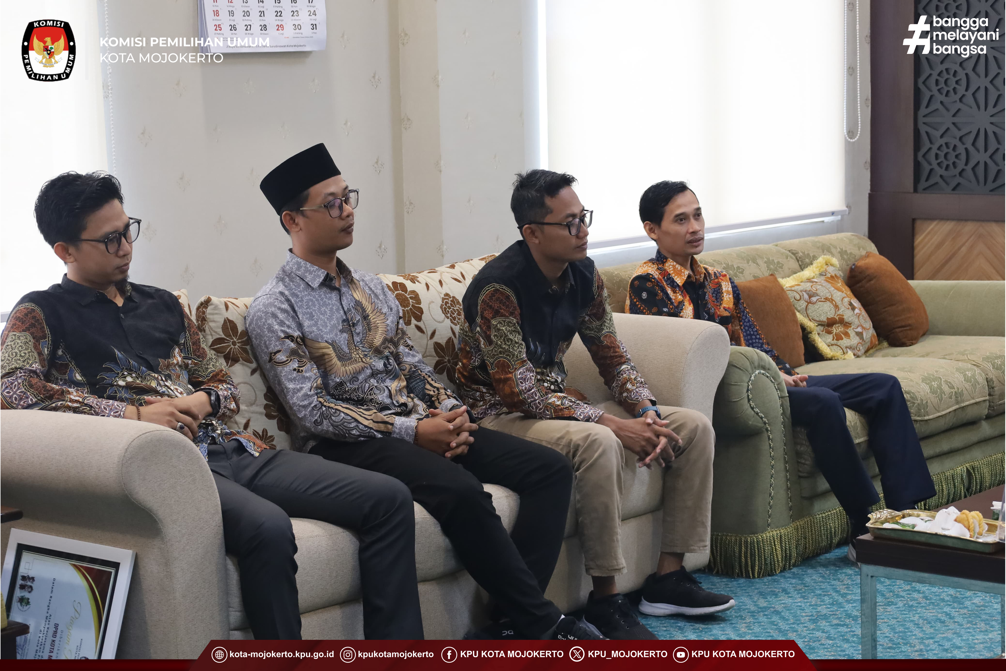 Rombongan komisioner dan Sekretaris KPU Kota Mojokerto diterima langsung oleh Ketua DPRD Kota Mojokerto, Ery Purwanti didampingi Wakil Ketua I DPRD Kota Mojokerto, Hadi Prayitno, S.H., dan Wakil Ketua II DPRD Kota Mojokerto, Arie Hernowo.