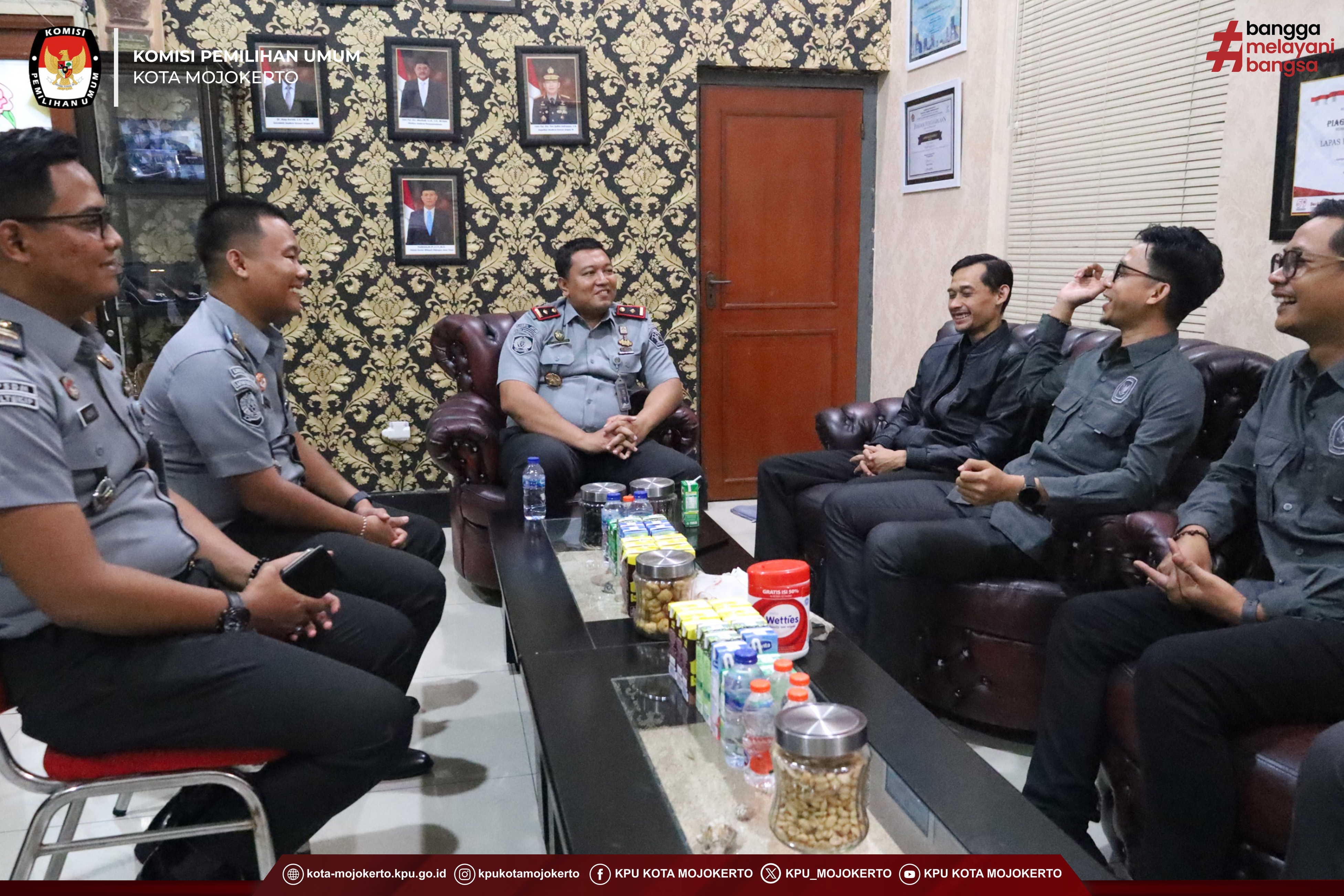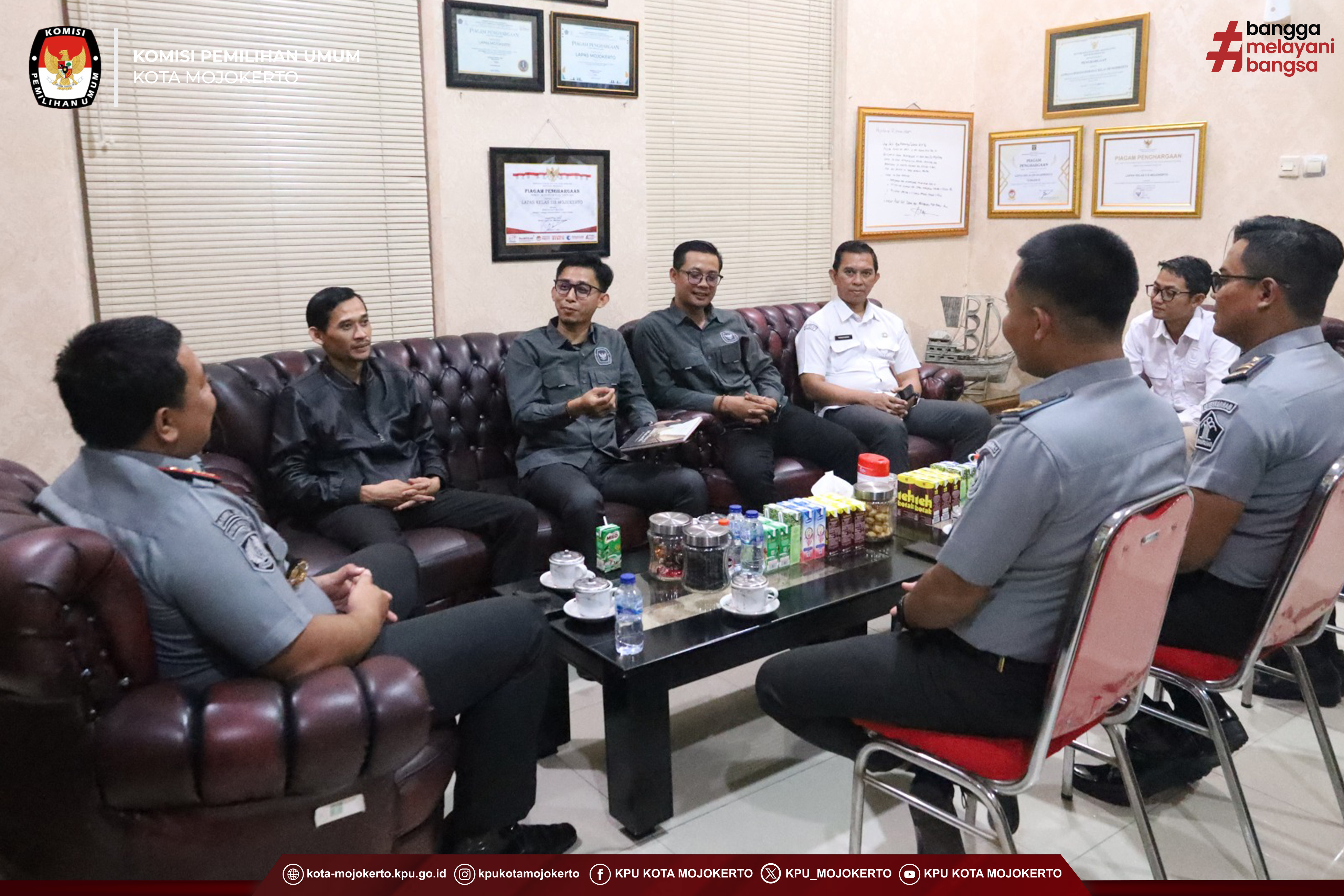 Rombongan komisioner dan Sekretaris KPU Kota Mojokerto diterima langsung oleh Kepala Lapas Kelas II B Mojokerto, Rudi Kristiawan didampingi oleh Kasi Binadik dan Giatja, Bambang Budiantoro, Kasubsi Registrasi dan Bimkemas, Hasnan Habib Sutikno, Pelaksana Registrasi dan Bimkemas, Moh. Syukron Amin dan Ajudan Kalapas, Alvian Rizky Perdana Putra.