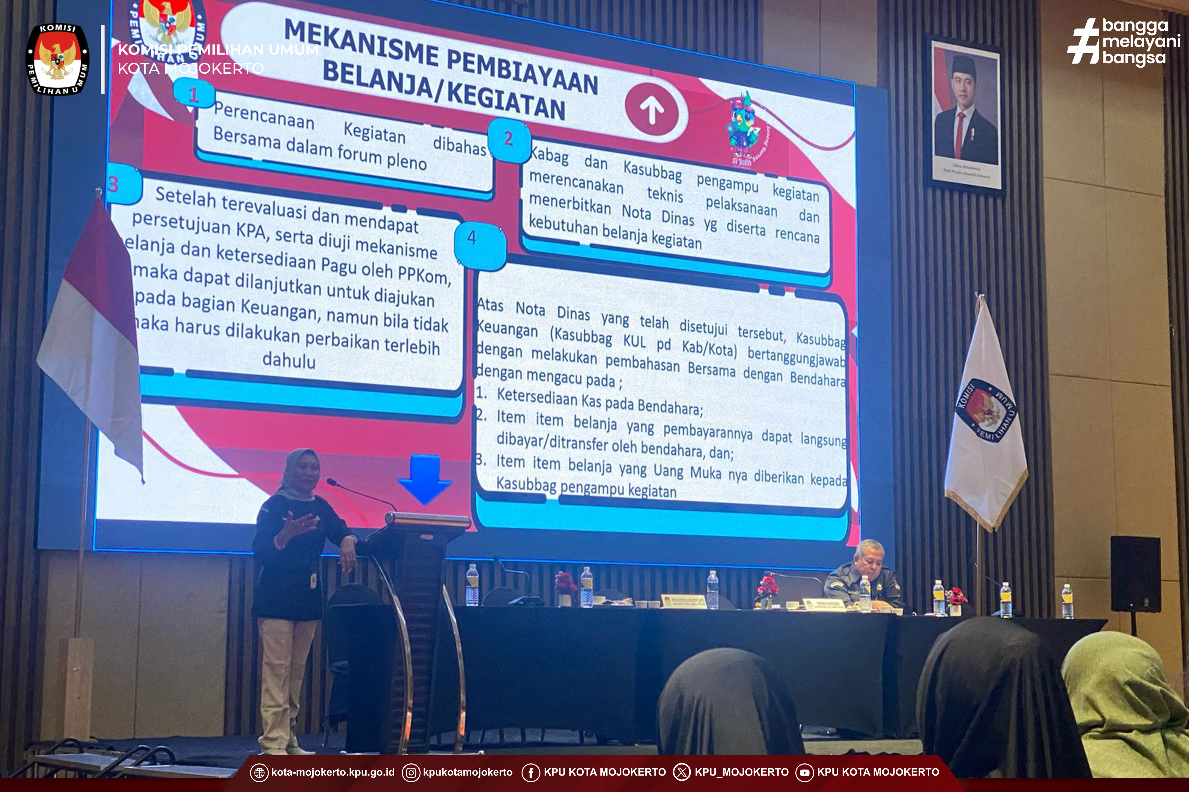 KPU KOTA MOJOKERTO HADIRI RAPAT EVALUASI PENGELOLAAN DAN PERTANGGUNGJAWABAN KEUANGAN KPU PROVINSI DAN KPU KABUPATEN/KOTA SE-JAWA TIMUR