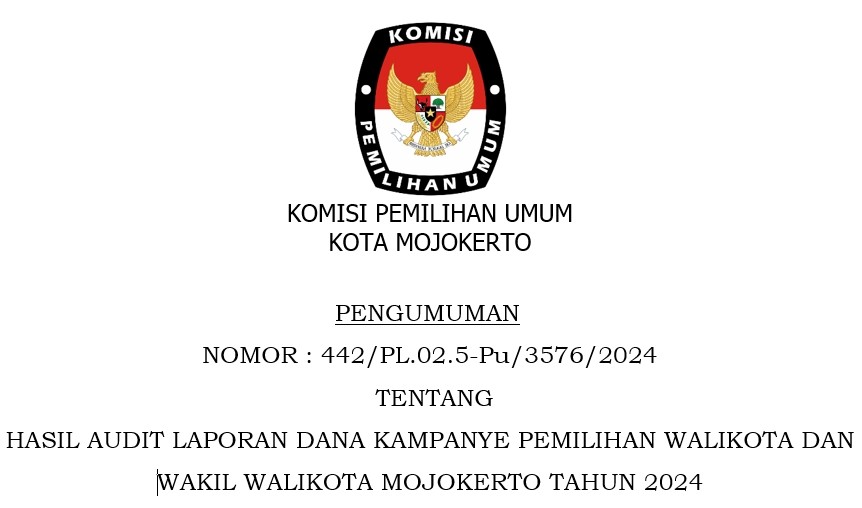 Pengumuman Hasil Audit Laporan Dana Kampanye Pemilihan Walikota dan Wakil Walikota Mojokerto Tahun 2024