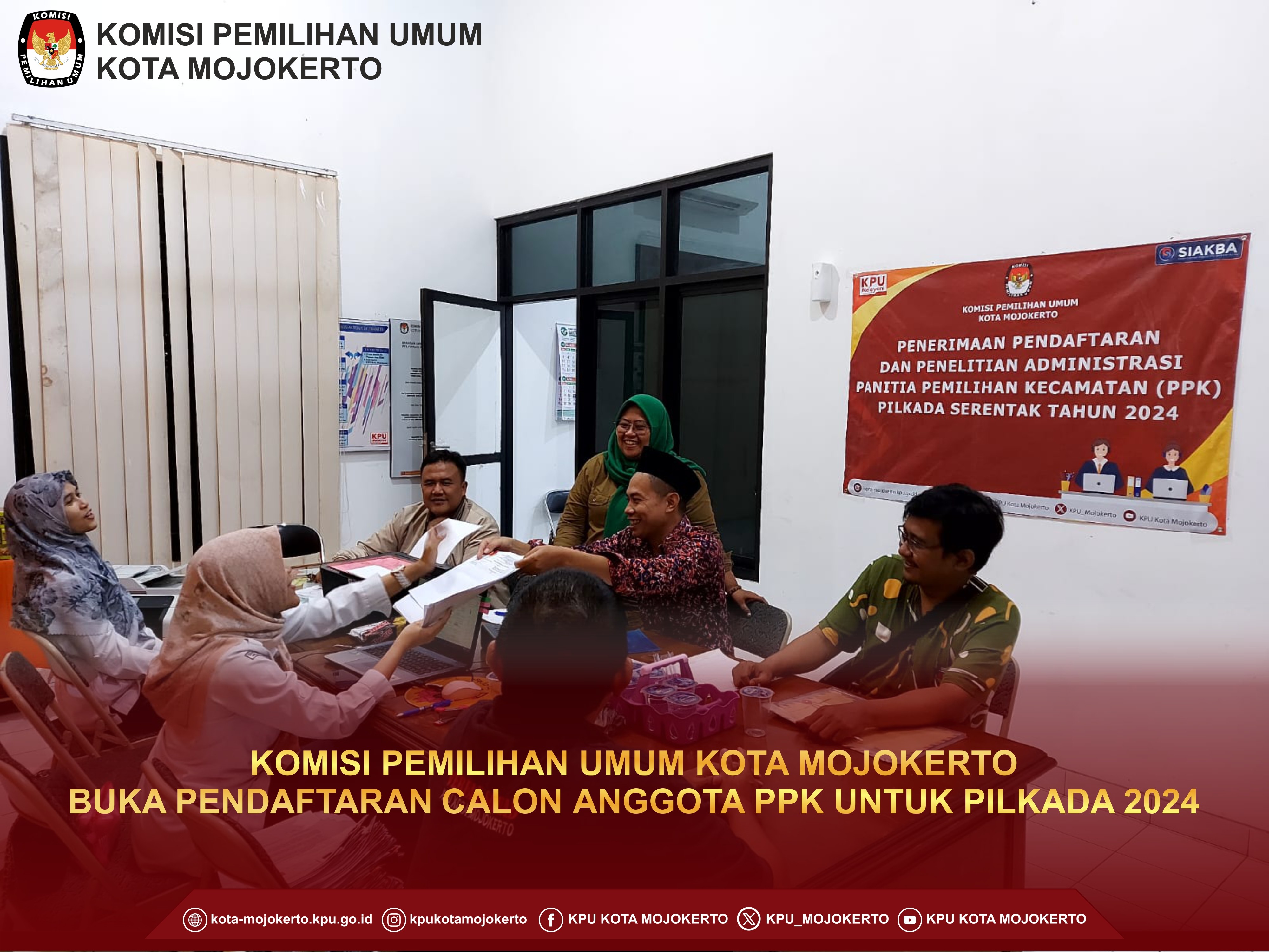 Mojokerto, kota-mojokerto.kpu.go.id – Komisi Pemilihan Umum (KPU) Kota Mojokerto membuka pendaftaran anggota Panitia Pemilihan Kecamatan (PPK) untuk Pemilihan Kepala Daerah (Pilkada) 2024 pada 27 November 2024 mendatang. Jadwalnya sudah ditetapkan melalui Keputusan KPU RI Nomor 476 tahun 2024. Pendaftaran mulai tanggal 23 April hingga 29 April 2024.(23/4/2024) Semua dokumen persyaratan calon peserta harus dilakukan pengunggahan melalui SIAKBA. Bagi warga Kota Mojokerto yang memenuhi syarat, dapat mendaftar sebagai anggota PPK Pilkada 2024 melalui sistem daring berbasis aplikasi laman, yakni Sistem Informasi Anggota KPU dan Badan Adhoc (SIAKBA). Total personel untuk PPK se-Kota Mojokerto adalah 5 orang untuk masing-masing kecamatan di kota ini. Selanjutnya, dilakukan penelitian administrasi calon anggota PPK pada 24 April hingga 3 Mei 2024 dan hasilnya diumumkan pada 4 Mei 2024. Bagi pendaftar yang lolos seleksi administrasi akan mengikuti seleksi tertulis pada 6 Mei 2024 menggunakan Computer Assisted Test (CAT) dan hasilnya diumumkan pada hari itu juga. KPU juga akan meminta tanggapan dan masukkan masyarakat terhadap calon anggota PPK ini pada 4-10 Mei 2024. Kemudian, seleksi wawancara terhadap calon anggota PPK dilaksanakan pada 11 Mei 2024 dan hasilnya diumumkan pada 14-15 Mei 2024. Adapun calon anggota PPK hasil seleksi akan dilantik pada 16 Mei 2024.(hai)