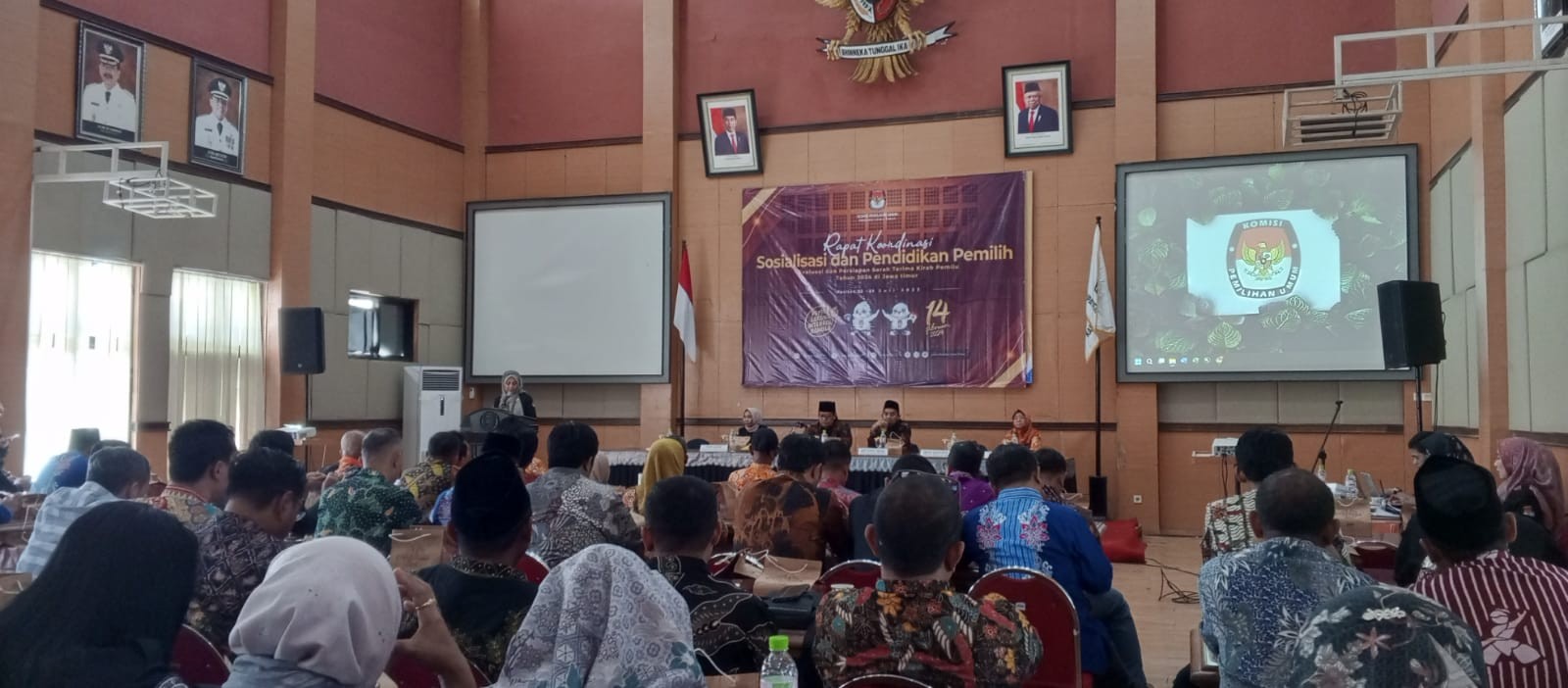 Pacitan, kota-mojokerto.kpu.go.id- KPU Kota Mojokerto mengikuti Rapat Koordinasi (Rakor) Sosialisasi dan Pendidikan Pemilih (Sosdiklih) bersama dengan 38 KPU Kabupaten/Kota se Jawa Timur pada Minggu, 23 Juli 2023, di gedung Karya Dharma, Jalan Jaksa Agung Suprapto Pacitan.