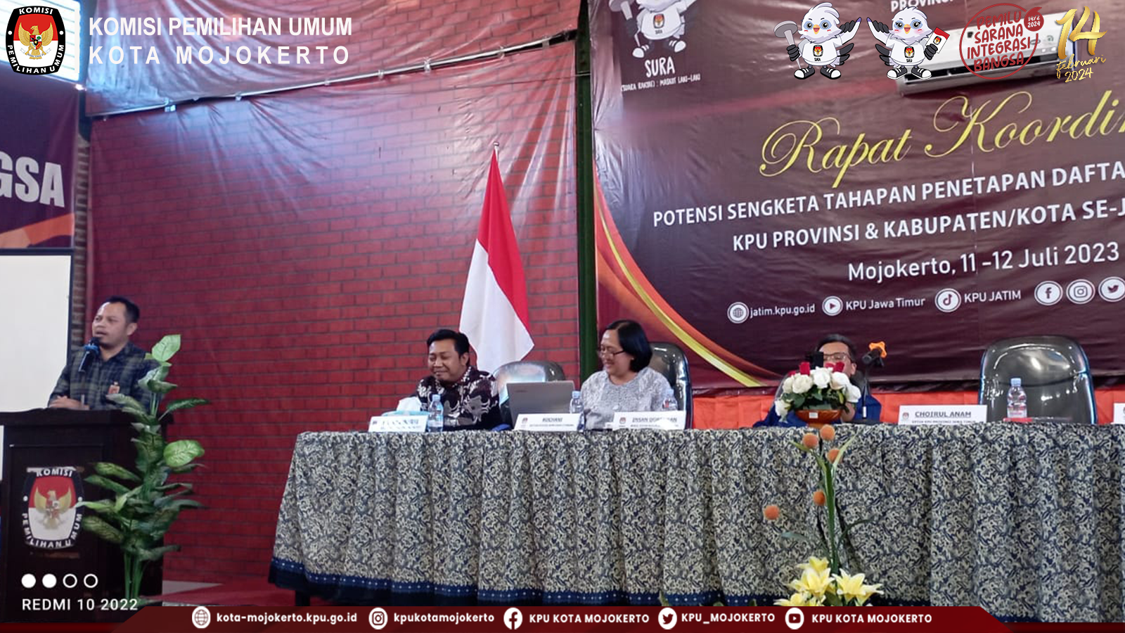 Mojokerto, kota-mojokerto.kpu.go.id — Dalam rangka memantapkan kesiapan Divisi Hukum dan Pengawasan menjelang tahapan penetapan Daftar Calon Sementara Pemilu 2024, Divisi Hukum KPU Kota Mojokerto kembali mengikuti Rakor yang diselenggarakan oleh KPU Provinsi Jawa Timur, pada Selasa dan Rabu (11 dan 12 Juli 2023).