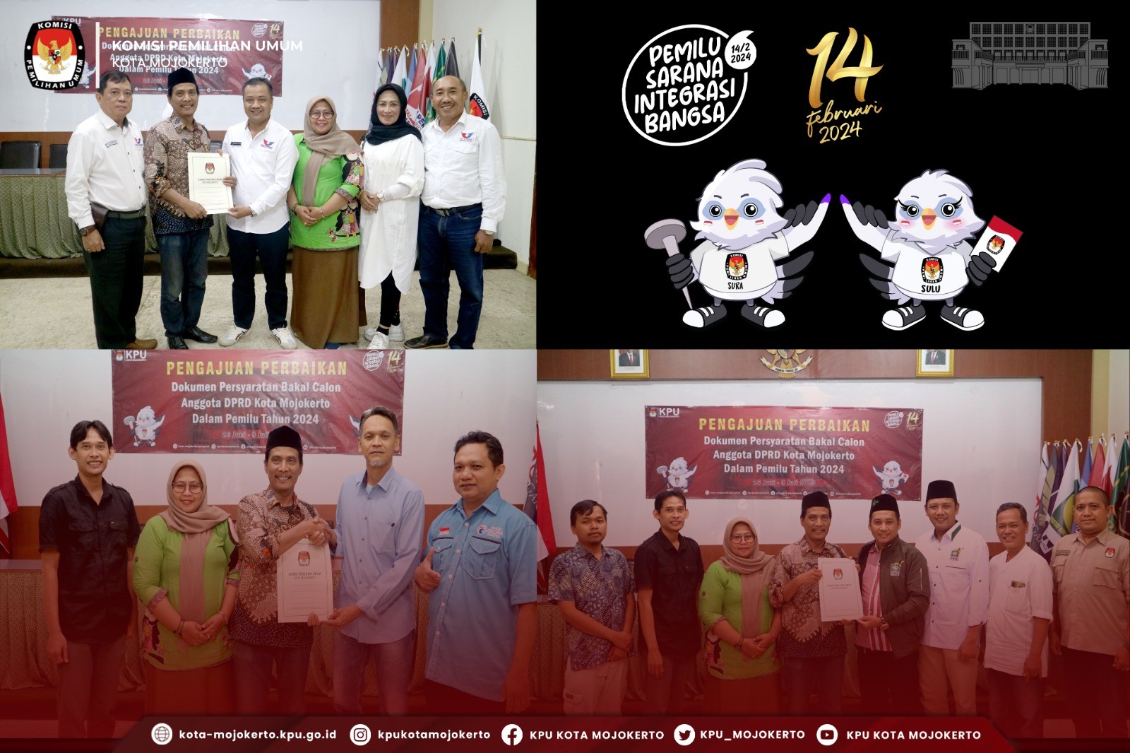 Mojokerto, kota-mojokerto.kpu.go.id – Dalam masa pengajuan perbaikan dokumen persyaratan Bakal Calon yang mulai sejak 26 Juni 2023 sampai 9 Juli 2023, tanggal 9 Juli 2023 Partai Kebangkitan Nusantara, Partai Demokrasi Indonesia Perjuangan, PARTAI KEADILAN SEJAHTERA, Partai Demokrat, Partai Persatuan Pembangunan, Partai Solidaritas Indonesia, Partai Gerakan Indonesia Raya, Partai Garda Perubahan Indonesia, Partai Amanat Nasional, Partai Hati Nurani Rakyat, Partai Golongan Karya, Partai Nasdem, Partai Bulan Bintang, Partai Ummat, dan Partai Buruh datang ke kantor KPU Kota Mojokerto.