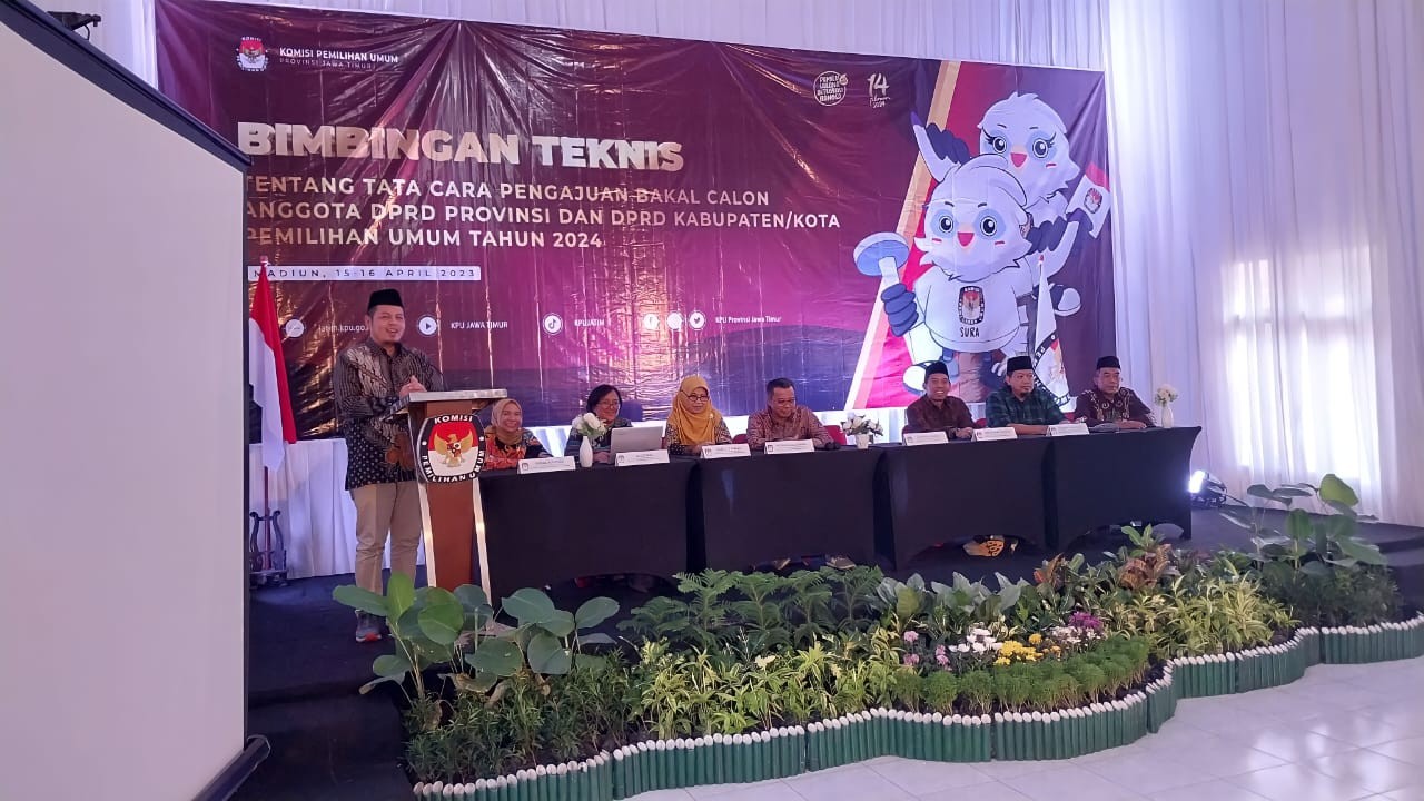 Pada sambutannya, Ketua KPU Jatim, Choirul Anam menyampaikan bahwa tahapan pencalonan anggota DPRD Provinsi dan Kabupaten/Kota meliputi antara lain, pengajuan bakal calon, verifikasi administrasi, penyusunan Daftar Calon Sementara (DCS), dan penetapan Daftar Calon Tetap (DCT).