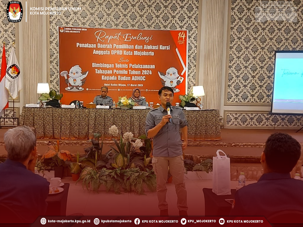 Untuk diketahui, acara sosialisasi ini juga dihadiri oleh Tri Widya Kartikasari, Divisi Teknis Penyelenggaraan, Usmuni, Divisi Perencanaan Data dan Informasi serta Feri Setiawan, Sekretaris KPU Kota Mojokerto. (sam)
