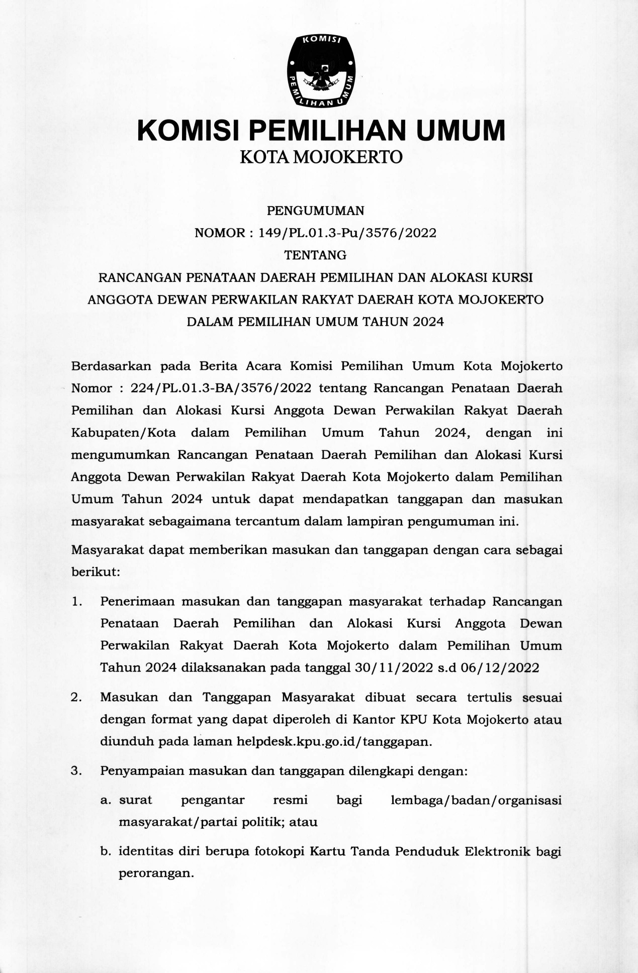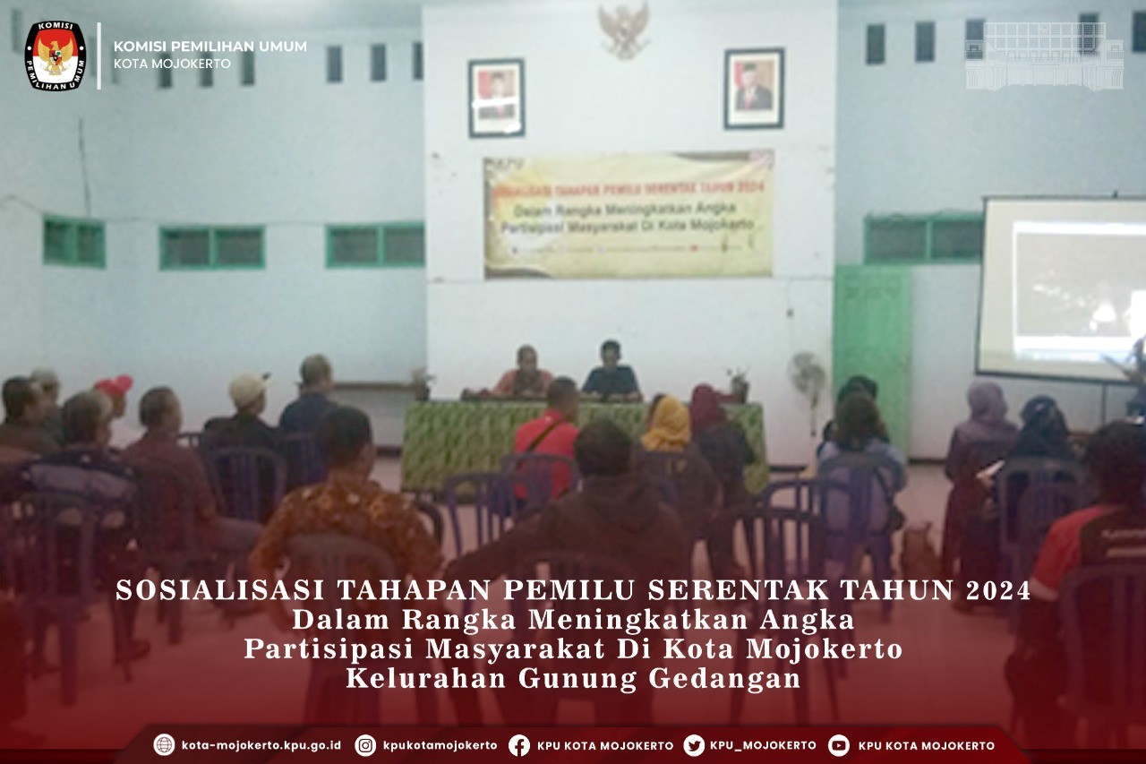 Sementara itu dalam penyampaian materi sosialisasi, M. Awaludin Zahroni, Divisi Partisipasi, Hubungan Masyarakat dan SDM KPU Kota Mojokerto bersama tim menyampaikan tiga hal penting terkait tahapan Pemilu antara lain, pertama, Keputusan KPU RI Nomor 21 Tahun 2022 hari pemungutan suaranya ditetapkan tanggal 14 Februari 2024, kedua, saat ini berlangsung tahapan verifikasi administrasi perbaikan dokumen persyaratan keanggotaan parpol, ketiga, akan datang tahapan rekrutmen badan adhoc yang akan dilangsungakan pada pertengahan November 2022.