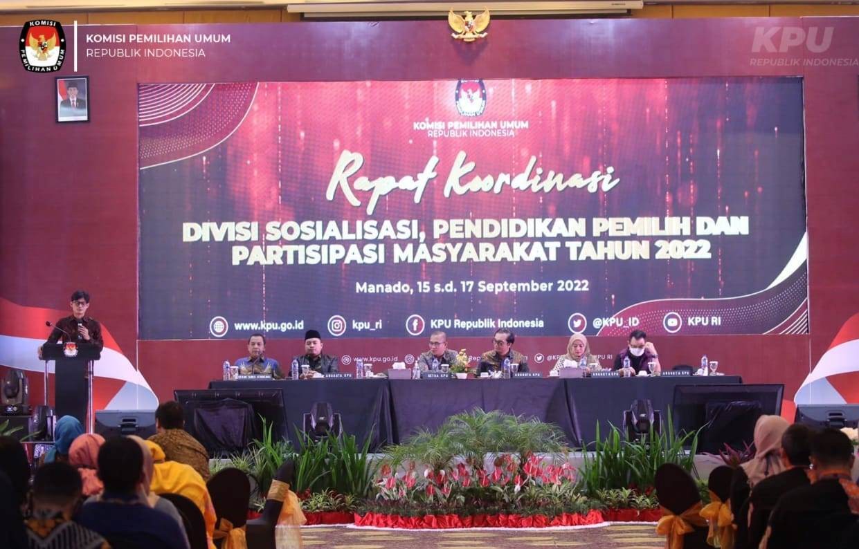 Mojokerto, kota-mojokerto.kpu.go.id- KPU Kota Mojokerto Ikuti acara Penutupan Kegiatan Rakornas Divisi Sosialisasi, Pendidikan Pemilih, dan Partisipasi Masyarakat pada pukul 19.00 WITA di Novotel Hotel Manado Convention & Center, Jum’at (16/9). Sebanyak tiga sesi panel digelar secara marathon mulai Jum’at pagi hingga malam hari. Narasumber yang hadir antara lain Mochammad Afifuddin; Kasubdit Fasilitasi Pendidikan Etika dan Budaya Politik Dirjen Polpum Kemendagri, Rahmat Santoso; News Anchor Inews Anisha Dasuki; Pimpinan Redaksi IDN Times, Uni Lubis; Drone Emprit, Yan Kurniawan serta Executive Producere Kompas TV, Abie Besman. Pada acara penutupan hadir lengkap seluruh jajaran pimpinan KPU Republik Indonesia antara lain, Ketua KPU RI, Hasyim Asyari, Anggota KPU August Mellaz, Parsadaan Harahap, Betty Epsilon Idroos, Yulianto Sudrajat, Mochammad Afifuddin, bersama Sekretaris Jenderal KPU Bernad Dermawan Sutrisno serta Kepala Biro Perundang-undangan Nur Syarifah, Kepala Biro Perencanaan dan Organisasi Suryadi. Pada sambutannya, August Mellaz selain menyampaikan kesimpulan dari kegiatan rakornas, ia tak lupa mengapresiasi kehadiran seluruh peserta dan ia berpesan agar hasil rakor ditindaklanjuti dengan segera melaksanakan berbagai kegiatan sosialisasi didaerah dengan tujuan peningkatan angka partisipasi. Sedangkan pada kesempatan yang sama baik Hasyim Asyari, Ketua KPU RI dan Bernad Dermawan Sutrisno Selaku Sekretaris Jenderal KPU RI berpesan agar KPU Provinsi dan Kabupaten/Kota tetap melaksanakan tugas tahapan dengan penuh semangat dan optimis, sembari terus meningkatkan kinerja pada setiap jajaran. (sam)