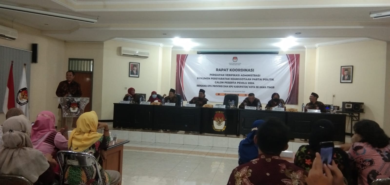 Pada acara pembukaan, Choirul Anam, Ketua KPU Jatim menyampaikan bahwa tujuan acara rakor persiapan ini untuk mememberikan pemahaman dan menyamakan persepsi terkait isi dari Peraturan KPU Nomor 4 tahun 2022 tentang Pendaftaran, Verifikasi dan Penetapan Partai Politik Peserta Pemilu Anggota DPR dan DPRD, serta regulasi lain seperti Keputusan KPU Nomor 259 tentang Pedoman Teknis Bagi Parpol dan KPT KPU No.260 tentang Pedoman Teknis Bagi KPU dalam pelaksanaan Pendaftaran, Verifikasi dan Penetapan Parpol Peserta Pemilu Anggota DPR dan DPRD.