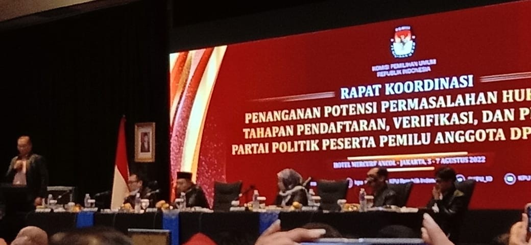 Mojokerto, kota-mojokerto.kpu.go.id-Komisioner Divisi Hukum dan Pengawasan KPU Kota Mojokerto, Imam Buchori, ST dan Kepala Subbag Hukum dan SDM KPU Kota Mojokerto, Noor Ifah, S.H ., M.IP, mengikuti kegiatan Rapat Koordinasi Penanganan Potensi Permasalahan Hukum pada Tahapan Pendaftaran, Verifikasi, dan Penetapan Partai Politik Peserta Pemilu Anggota DPR dan DPRD, di Mercure Convention Center Ancol Jakarta, pada tanggal 5-7 Agustus 2022.