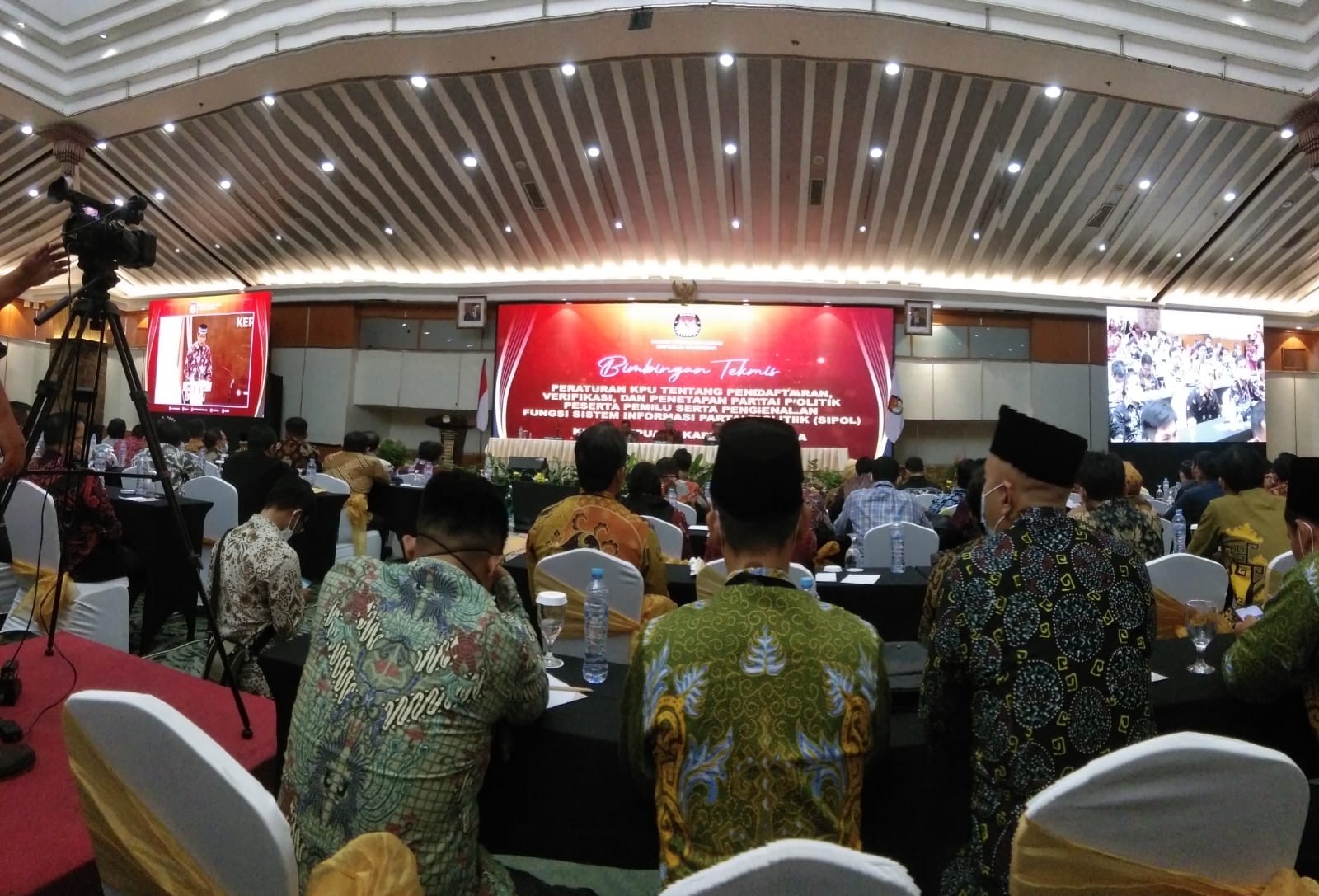 Dijelaskan olehnya, jika parpol calon peserta Pemilu dapat menjadi peserta Pemilu setelah memenuhi persyaratan antara lain, berstatus badan hukum sesuai dengan Undang-Undang tentang Partai Politik; memiliki kepengurusan di seluruh provinsi; memiliki kepengurusan di 75% (tujuh puluh lima persen) jumlah kabupaten/kota di provinsi; memiliki kepengurusan di 50% (lima puluh persen) jumlah kecamatan di kabupaten/kota; menyertakan paling sedikit 30% (tiga puluh persen) keterwakilan perempuan pada kepengurusan Partai Politik tingkat pusat; memiliki anggota sekurang-kurangnya 1.000 (seribu) orang atau 1/1.000 (satu per seribu) dari jumlah Penduduk pada kepengurusan Partai Politik yang dibuktikan dengan kepemilikan KTA; mempunyai Kantor Tetap untuk kepengurusan Partai Politik pada tingkat pusat, provinsi, dan kabupaten/kota sampai tahapan terakhir Pemilu; menyampaikan nama, lambang, dan tanda gambar Partai Politik kepada KPU; dan menyerahkan nomor rekening atas nama Partai Politik pada tingkat pusat, provinsi, dan Kabupaten/kota. Selain menyertakan paling sedikit 30% (tiga puluh persen) keterwakilan perempuan pada kepengurusan Partai Politik tingkat pusat sebagaimana dimaksud pada ayat (1) huruf e, Partai Politik juga memperhatikan 30% (tiga puluh persen) keterwakilan perempuan pada kepengurusan Partai Politik tingkat provinsi dan kabupaten/kota. Selain dibuktikan dengan kepemilikan KTA Partai Politik melengkapi salinan dokumen KTP-el atau KK untuk sinkronisasi data keanggotaan.