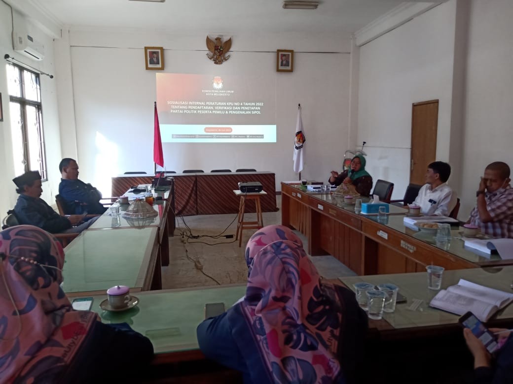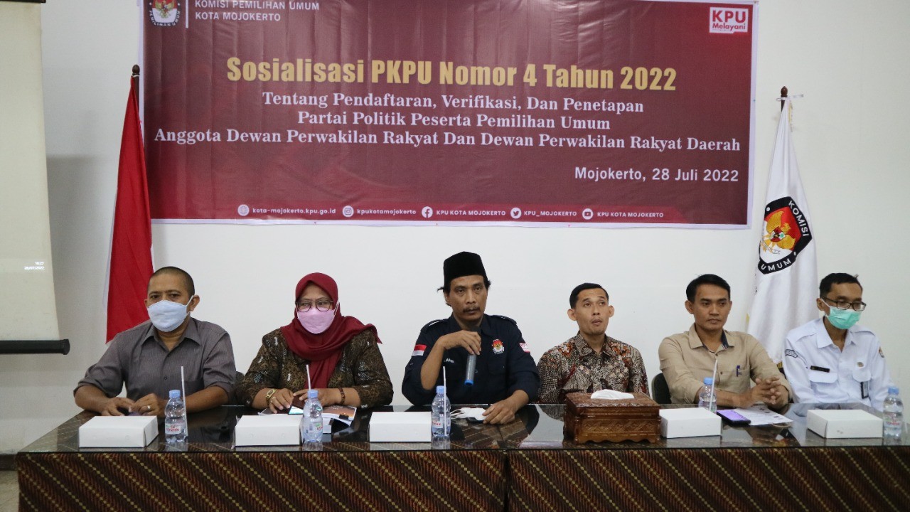 Mojokerto, kota-mojokerto.kpu.go.id- KPU Kota Mojokerto Sosialisasikan PKPU (PKPU) Nomor 4 Tahun 2022 tentang Pendaftaran, Verifikasi Dan Penetapan Partai Politik Pemilu 2024, Anggota DPR dan DPRD kepada partai politik di Kota Mojokerto, Kamis (28/7/ 2022).