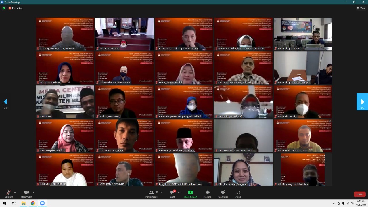 kpu-mojokertokota.go.id-KPU Kota Mojokerto mengikuti Focus Group Discussion (FGD) Pencermatan Anggaran dan Kegiatan Tahapan Pembentukan PPK dan PPS Tahun 2024, Selasa (26/4/2022).