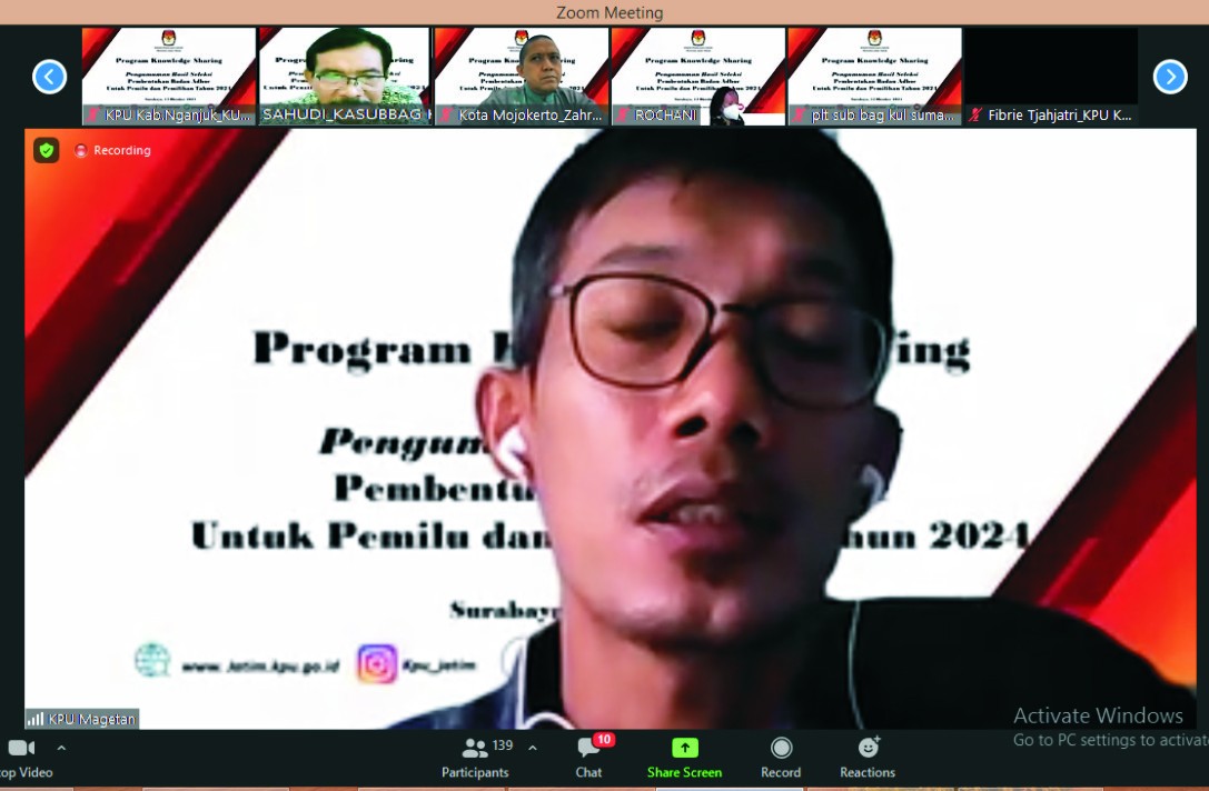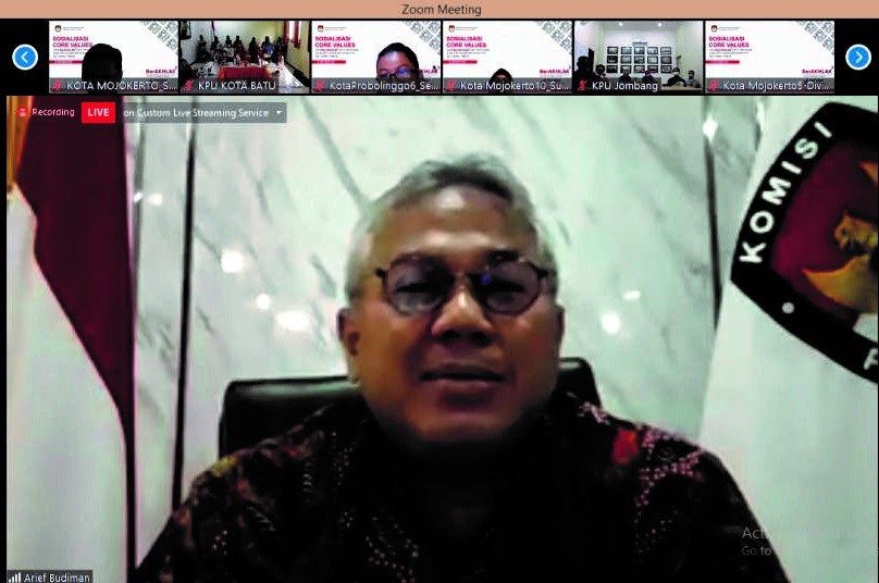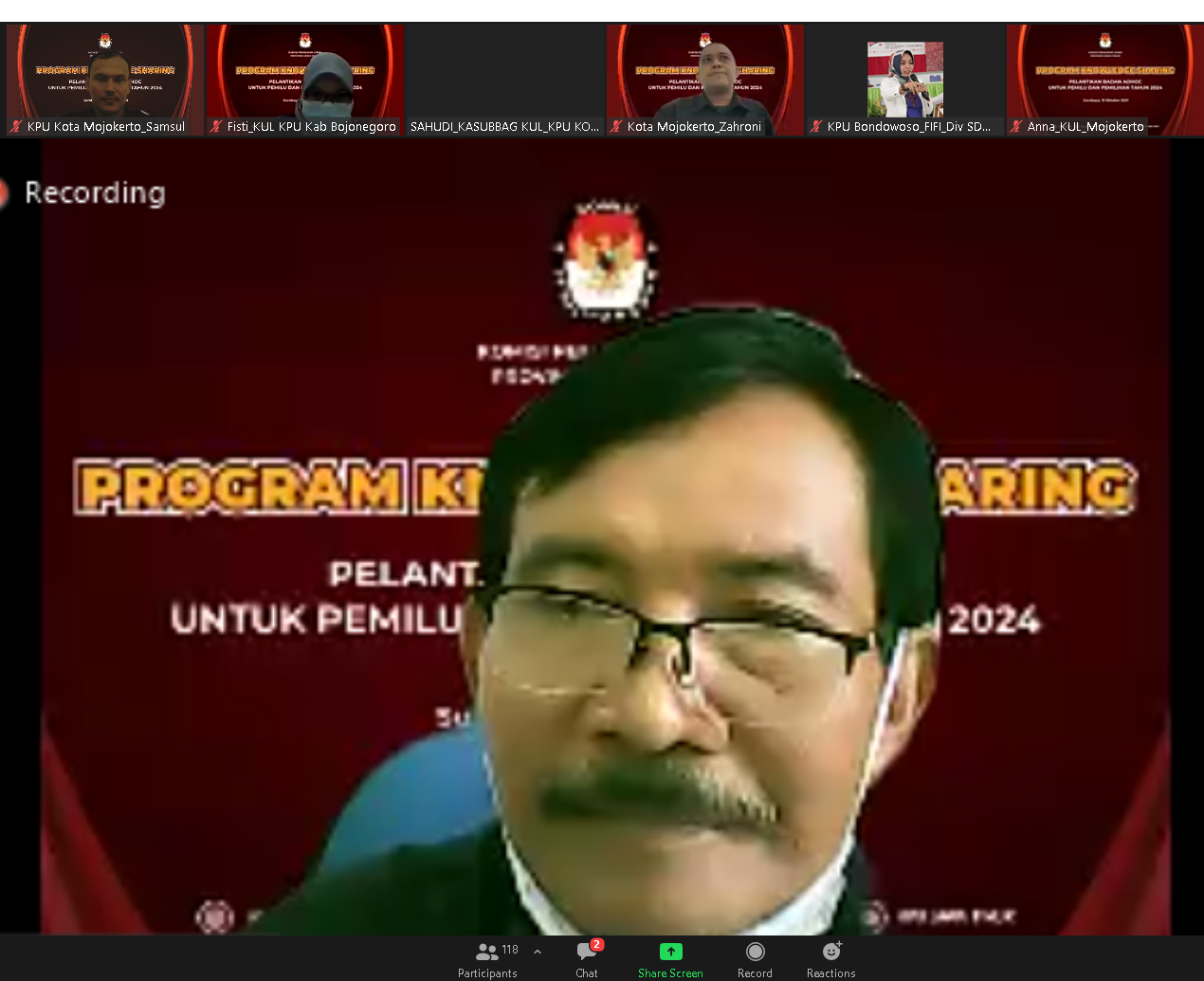 KOTA MOJOKERTO - Selasa (19/10) KPU Kota Mojokerto kembali aktif dalam knowledge sharing yang diselenggarakan KPU Provinsi Jawa Timur. Acara yang dilaksanakan secara daring kali ini mengambil tema “Pelantikan Badan Adhoc untuk Pemilu dan Pemilihan tahun 2024.” Hadir sebagai narasumber, Mustofirin, Abggota KPU Kabupaten Bojonegoro Divisi Sosdiklih Parmas dan SDM, sedangkan Rafiqi, S.H.I., Anggota KPU Kabupaten Sumenep bertindak sebagai pembahas. Pada sesi pemaparan, Mustofirin, menyampaikan mulai dari dasar hukum, makna pelantikan, prosedur pelantikan baik secara daring maupun luring, siapa yang berhak melantik, persiapan berkas administrasi, hingga proses pelantikan dan sumpah janji. Lebih lanjut ia mengingatkan bahwa prosesi pelantikan dapat dilakukan secara luring dan daring tergantung dari ketersediaan anggaran yang ada. Sedangkan pada sesi berikutnya, Rafiqi sebagai pembahas mengatakan jika tahapan pelantikan badan adhoc itu terlihat mudah, namun tahapan ini sesunggguhnya memberikan tantangan tersendiri bagi kabupaten/kota dengan jumlah kecamatan yang banyak. “Yang kecamatannya tidak terlalu banyak tahapan ini mungkin dapat dengan mudah dilaksanakan, namun bagi daerah dengan jumlah kecamatan yang banyak pasti akan sedikit merepotkon penyelenggara, apalagi proses pelantikan pada saat pandemi dilakukan secara daring,” tutur Rafiqi. Pada sesi akhir Rochani, Divisi Sosdiklih, Parmas dan SDM KPU Provinsi Jawa Timur menyampaikan bahwa prosesi pelantikan merupakan tahap yang penting, namun juga harus menyesuaikan dengan kondisi yang ada, khususnya bagi anggota badan adhoc yang pada saat acara tidak dapat hadir karena sakit atau alasan lain. Melalui forum yang baik ini Rochani kembali mengingatkan jika semua harus bisa urun rembug untuk perbaikan tahapan pemilu kedepan yang lebih baik. (sam)