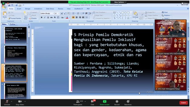 KPU Kota Mojokerto Ikuti Webinar Desa Peduli Pemilu dan Pemilihan (Seri 6) “Modus Operandi & Solusi Kampanye SARA.”