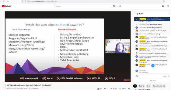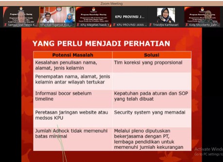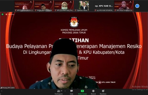 Kota Mojokerto – KPU Kota Mojokerto pada Kamis (07/10/2021) mengikuti Program Knowledge Sharing dengan tema “Pengumuman Hasil Seleksi Tertulis Pembentukan Badan Ad Hoc untuk Pemilu dan Pemilihan 2024” yang digelar secara daring oleh KPU Provinsi Jatim. Acara yang dimulai pukul 09.00 WIB tersebut menghadirkan Divisi Sosdiklih; Parmas dan SDM KPU Kabupaten Nganjuk, Kurrotul A’yuni sebagai narasumber dan Divisi Sosdiklih; Parmas dan SDM KPU Kabupaten Kediri, Nanang Qosim sebagai pembahas. Dalam pemaparannya Yuni menyampaikan terdapat beberapa tahapan persiapan sebelum pengumuman badan adhoc terpilih. Tahapan tersebut antara lain adalah : pemeriksaan awal, rapat pleno, dan pengesahan. Pemeriksaan awal disini meliputi pengecekan dan memastikan kebenaran nama calon, nomor pendaftaran, jenis kelamin, kecamatan/desa/kelurahan, dan memperhatikan masukan dan tanggapan masyarakat; berikutnya rapat pleno dengan menetapkan paling banyak sepuluh calon anggota PPK yang lulus seleksi tertulis dan menetapkan paling banyak enam calon anggota PPS yang lulus seleksi tertulis yang kemudian dituangkan dalam BA, dan terakhir pengesahan calon anggota PPK dan PPS lulus seleksi tertulis yang dituangkan dalam naskah dinas pengumuman. Dalam mengumumkan hasil seleksi tertulis menurut Yuni sangat penting untuk memperhatikan jadwal sebagaimana diatur dalam PKPU No. 2 Tahun 2021 yaitu, Pemeriksaan hasil seleksi tertulis dan Penetapan calon paling lama 3 hari setelah pelaksanaan; Paling lambat 1 hari setelah pemeriksaan seleksi tertulis; Diumumkan selama 3 hari. ketiga waktu ini merupakan titik kritis yang harus diperhatikan dengan seksama oleh KPU selaku penyelenggara seleksi. Sementara itu, Nanang Qosim, Divisi Sosdiklih, Parmas dan SDM KPU Kabupaten Kediri dalam pembahasannya terkait dengan pengumuman hasil seleksi tertulis mengingatkan agar selalu berpedoman pada UU No.14 tahun 2008 tentang Keterbukaan Informasi Publik, dimana hasil dari tes tertulis badan adhoc terdapat Informasi yang dikecualikan dan tidak dapat diakses oleh pemohon informasi publik karena berkaitan dengan informasi pribadi seseorang. Lebih lanjut Nanang menekankan jika tahapan mengumumkan hasil tes tulis badan adhoc harus dilakukan secara hati-hati agar dikemudian hari tidak timbul permasalahan. Pada akhir sesi acara, Rochani, Divisi SDM dan Litbang KPU Jatim, memberikan arahan jika dalam melaksanakan pengumuman hasil tes tulis badan adhoc terdapat kasus jumlah calon badan ad hoc yang lulus tidak memenuhi batas minimal, maka KPU Kabupaten/Kota melalui pleno harus melakukan koordinasi dan bekerjasama dengan perguruan tinggi atau lembaga pendidikan untuk mencukupi kekurangan tersebut. (sam)