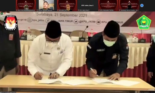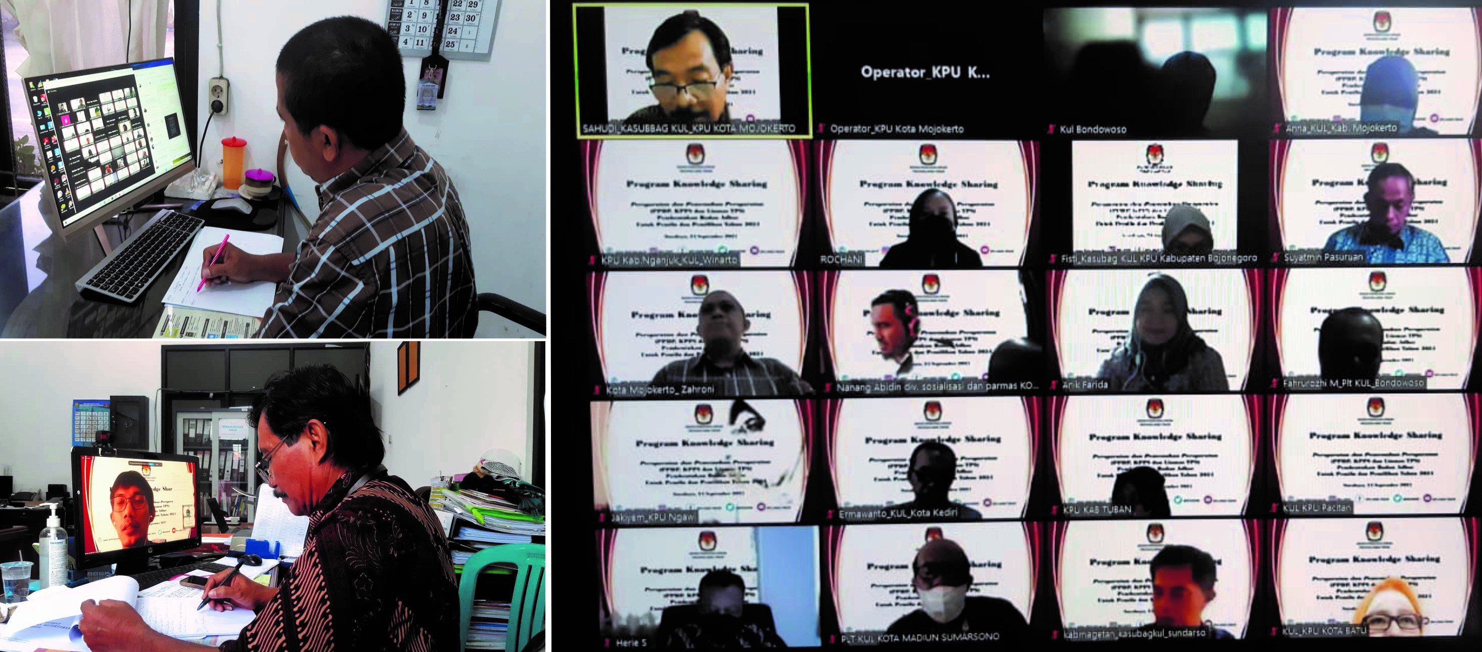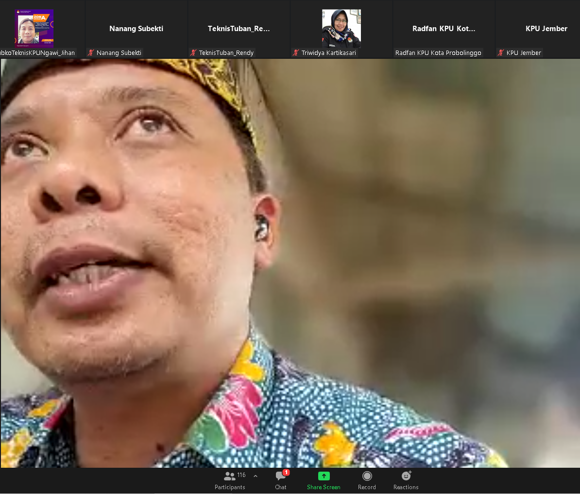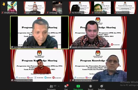 Kota Mojokerto - KPU Kota Mojokerto pada Jum’at (24/9/2021) mengikuti Program Knowledge Sharing Pembentukan Badan Adhoc untuk Pemilu dan Pemilihan Tahun 2024 yang dilaksanakan secara virtual oleh KPU Provinsi Jawa Timur. Berbeda dengan sebelumnya, edisi kali ini terasa istimewa lantaran Divisi Sosdiklih, Parmas dan SDM KPU Kota Mojokerto, Muhammad Awaludin Zahroni, dipercaya sebagai narasumber, dan Sahudi, Kasubbag. Keuangan, Umum dan Logistik KPU Kota Mojokerto didapuk sebagai Moderator. Sedangakan untuk pembahas, KPU Provinsi Jatim mempercayakannya kepada Nanang Abidin, Divisi Sosdiklih, Parmas dan SDM KPU Kota Pasuruan. Acara yang juga dihadiri oleh Rochani, S.Pi. M.P., Divisi SDM dan Litbang KPU Provinsi Jawa Timur ini dimulai pukul 09.00 WIB, dan mengambil tema “Persyaratan dan Pemenuhan Syarat (PPDP, KPPS dan Linmas TPS) Pembentukan Badan Adhoc Untuk Pemilu dan Pemilihan Tahun 2024” Dalam pemaparannya, Zahroni menyebut bahwa peran penyelenggara Pemilu di tingkat bawah memiliki peran yang sama penting dengan penyelenggara lainnya. Penyelenggara pada level bawah yang dimaksud disini adalah para petugas pelaksana di TPS, antara lain, KPPS, PPDP dan Linmas. Pada kesempatan yang sama, Zahroni juga menjelaskan secara rinci persyaratan umum dan administrasi menjadi PPDP, KPPS dan Linmas TPS, di mana seluruh persyaratan tersebut diatur dalam PKPU Nomor 3 Tahun 2018 tentang Pembentukan dan Tata Kerja PPK, PPS, dan KPPS dalam Pemilu. Pada sesi diskusi, diketahui berbagai problematika dalam proses rekrutmen PPDP, KPPS dan Linmas, mulai dari problem keterbatasan SDM yang memadai hingga soal netralitas independensi KPPS dan PPPD. Terkait dengan dua permasalahan tersebut, Nanang Abidin membagi pengalamannya, bahwa terkait dengan Linmas, kewenangan penunjukkannya berada di Kepala Desa dan itu sudah jelas diatur, sedangkan soal netralitas PPDP, Nanang menyebut bahwa persoalan tersebut harus dikembalikan lagi ke Undang-Undang dan PKPU meskipun ada rekomendasi dari pengawas Pemilu. Pada sesi penutup, Rochani mengingatkan bahwa dalam forum pembelajaran bersama ini apabila terdapat hal-hal yang belum selesai dibahas, maka ia membuka lebar pintu diskusi diluar forum sharing knowledge. Sedangkan terkait dengan berbagai permasalahan yang muncul dalam proses rekrutmen KPPS, PPDP dan Linmas, ia menekankan kembali bahwa seluruh proses serta persyaratan rekrutmen harus berpedoman pada aturan. Selain itu, Rohani juga mendorong KPU Kabupaten/Kota menjalin komunikasi yang baik dengan seluruh tingkatan penyelenggara adhoc dan juga pengawas Pemilu. (sam)