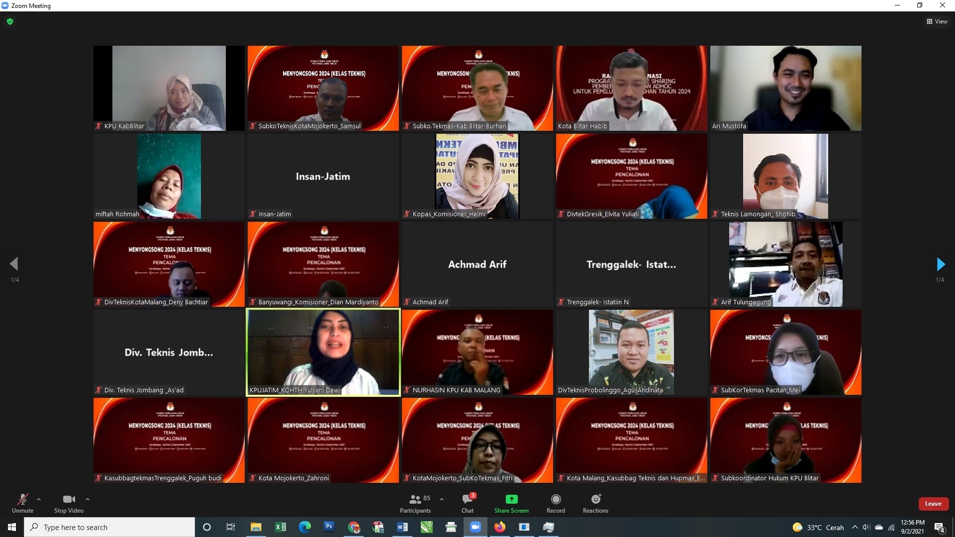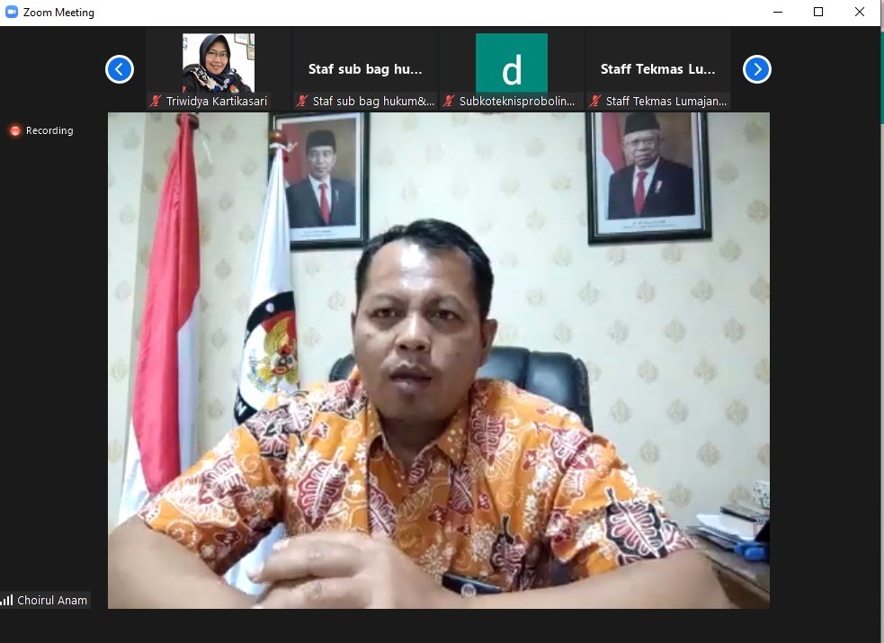 Pada Selasa (7/9) KPU Kota Mojokerto kembali aktif mengikuti Kelas Teknis Seri ke-14 dengan Tema Pemungutan Suara. Kegiatan yang dimotori oleh KPU Provinsi Jawa Timur ini dilaksanakan secara virtual dan diikuti oleh seluruh KPU Kabupaten/Kota di Jawa Timur. Pada seri yang diikuti oleh Triwidya Kartikasri, Divisi Teknis Penyelenggaran KPU Kota Mojokerto ini menghadirkan dua narasumber, pertama Nur Hakim, Divisi Teknis Penyelenggaraan KPU Kabupaten Tuban dengan tema materi Dukungan Perlengkapan Agar Pemungutan Suara Aman, dan pemateri kedua adalah Nur Ismandiana, Divisi Teknis Penyelenggaraan Kabupaten Lumajang yang menyajikan tema materi Permasalahan Dalam Pemungutan Suara. Dalam pemaparannya, Nur Hakim menyebut bahwa perlengkapan pada pemungutan suara adalah material penting terlaksananya proses konversi hak pilih menjadi suara. Dalam tahapan ini yang terpenting adalah mengutamakan kerjasama dan sinergi semua pihak mulaui dari KPU RI hingga pelaksana pemungutan suara. Secara teknis Nu hakim menjelaskan bahwa berdasarkan PKPU Nomor 15 Tahun 2018, yang dimaksud dengan perlengkapan penyelenggaraan Pemilu adalah perlengkapan yang digunakan dalam Penyelenggaraan Pemilu, meliputi Perlengkapan Pemungutan Suara dan Dukungan Perlengkapan Lainnya. Sedangkan secara khusus pada Pasal 1 Ayat 24 menyebut perlengkapan pemungutan suara adalah perlengkapan yang digunakan dalam pemungutan suara dan secara langsung mendukung Penyelengggaraan Pemilu. Perlengkapan yang dimaksud antara lain: kotak suara; surat suara; tinta; bilik pemungutan suara; segel; alat untuk mencoblos pilihan; dan TPS. Pada ayat berikutnya, Ayat 25 menyebut dukungan perlengkapan lainnya adalah perlengkapan yang digunakan untuk menjaga keamanan, kerahasiaan, dan kelancaran pelaksanaan pemungutan dan penghitungan suara. Perlengkapan yang dimaksud pada Ayat 25 antara lain: tanda pengenal KPPS/KPPSLN, petugas ketertiban, dan saksi; karet pengikat surat suara; lem/perekat; kantong plastik; pena bolpoin (ballpoint); gembok atau alat pengaman lainnya; spidol; formulir untuk berita acara dan sertifikat serta formulir lainnya; stiker kotak suara; tali pengikat alat pemberi tanda pilihan; alat bantu tunanetra; daftar Pasangan Calon dan daftar calon tetap; dan salinan daftar pemilih tetap. Pada kesempatan berikutnya, terkait dengan tema materi Permasalahan Dalam Pemungutan Suara, Nur Ismandiana menyebut bahwa permasalahan yang kerap muncul dalam penyelenggaraan tahapan pemungutan suara diantaranya adalah: logistik, penyelenggara, saksi, dan pemilih. Pada logistik pemungutan suara, problem yang dihadapi penyelenggara adalah mulai dari keterlambatan hingga kekurangan logistik serta surat suara yang tertukar. Pada penyelenggara, permasalahan yang kerap terjadi adalah masalah teknis pengisian formulir, pemahaman DPK dan DPTb dan lain-lain. Permasalahan saksi di TPS antara lain datang terlambat, tidak membawa surat mandat dan lain-lain. Sedangkan untuk permasalahan pemilih, kurangnya pemahaman definisi DPT, DPTb dan DPK sering menjadi problem yang dihadapi baik penyelenggara maupun pemilih sendiri. Pada sesi terakhir, baik Divisi Teknis Penyelenggaraan Provinsi Jawa Timur, Insan Qoriawan dan Ketua KPU Provinsi Jatim, Choirul anam Insan, menyebut bahwa kedepan KPU harus dapat memaksimalkan kegiatan bimtek di level pelaksana, mulai PPK hingga KPPS. Anam menyebut jika para aktor pemilu dalam hal ini penyelenggara menjadi kunci utama, sehingga saat ini dan kedepan harus dapat terbangun sinergisitas. “kerja kita dituntut sempurna tidak boleh ada celah, sebaik apapun kita menyelenggarakan pemilu, kalu ada satu TPS saja yang bermasalah maka itu akan menjadi sorotan publik yang terus diputar dan bisa jadi pintu masuk masalah yang lebih besar”, Ujar Anam menutup Sesi 14. (sam)