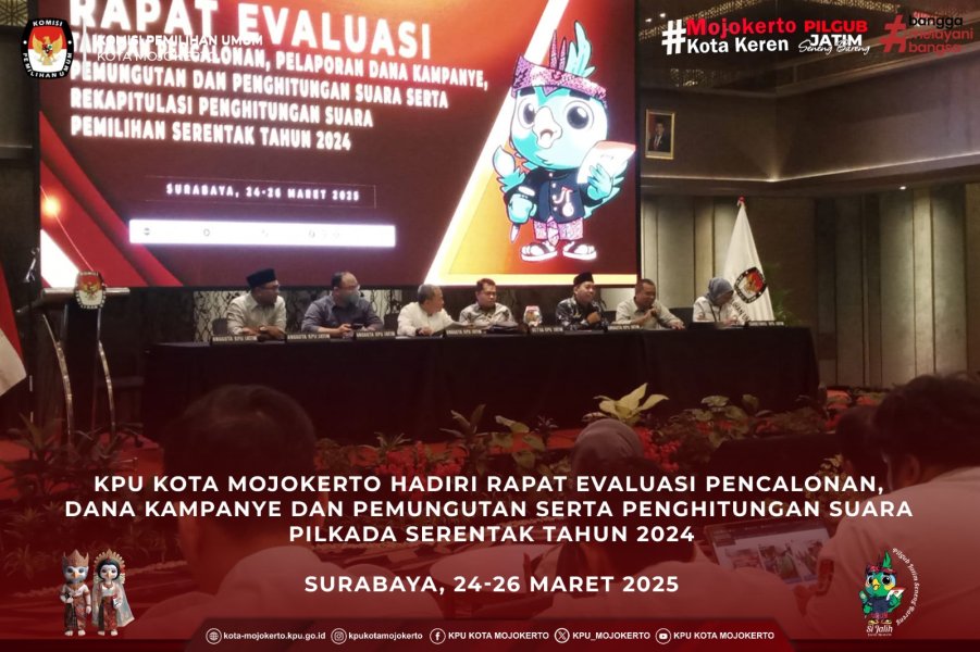 Surabaya, kota-mojokerto.kpu.go.id - Komisi Pemilihan Umum (KPU) Kota Mojokerto hadiri kegiatan Rapat Evaluasi Tahapan Pencalonan, Pelaporan Dana Kampanye dan Pemungutan dan Penghitungan Suara, Rekapitulasi Penghitungan Suara Pemilihan Serentak Tahun 2024 yang berlangsung selama tiga hari di Hotel Platinum Tunjungan Surabaya, mulai Senin - Rabu 24-26 Maret 2025. Kegiatan ini diikuti oleh perwakilan dari KPU Kabupaten/Kota se-Jawa Timur, dengan tujuan untuk mengevaluasi berbagai aspek terkait pencalonan, pengelolaan dana kampanye, dan proses pemungutan suara menjelang Pilkada Serentak 2024. Dalam sambutannya, Ketua KPU Jawa Timur, Aang Kunaifi menegaskan bahwa hasil evaluasi ini diharapkan bukan hanya dapat meningkatkan kualitas penyelenggaraan pemilu/pemilihan di Jawa Timur, tetapi juga berfungsi sebagai acuan bagi KPU di daerah lain. Terdapat empat narasumber yang dihadirkan dalam Rapat Evaluasi ini, yaitu Rudi Wibowo SE., MM., Sidharta Wisnu Wardhana, Yana Syafriyana Hijri , dan Hendra Prasetya K. Divisi Hukum dan Pengawasan KPU Provinsi Jawa Timur, Habib M. Rohan dalam arahannya menyoroti pentingnya kesadaran dalam tahapan penghitungan suara, yang merupakan momen paling krusial dalam pemilu. Selain itu, penegasan tentang tanggung jawab setiap individu dalam pelaporan dan penggunaan dana kampanye turut disampaikan, agar akuntabilitas dapat terjaga selama proses pemilu berjalan. Para peserta juga mendapat panduan mengenai teknik penyusunan buku tahapan teknis untuk mendukung pelaksanaan Pilkada. KPU Provinsi Jawa Timur optimis, dengan langkah evaluasi yang tepat, pemilu diharapkan berjalan lebih transparan, adil, dan sesuai dengan prinsip-prinsip demokrasi yang baik.(hai/ifa)