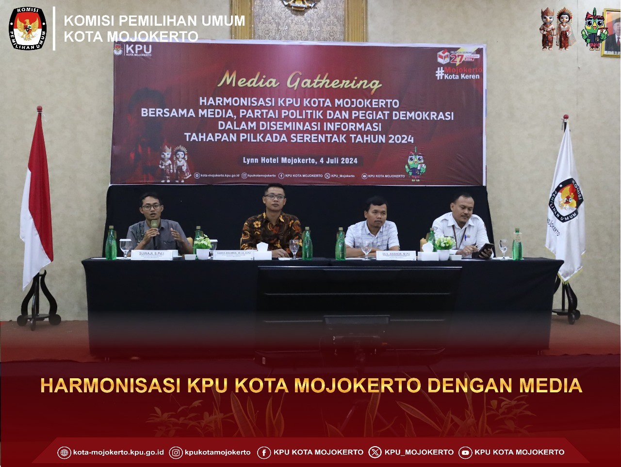 Mojokerto, kota-mojokerto.kpu.go.id – Hari ini Komisi Pemilihan Umum (KPU) Kota Mojokerto menyelenggarakan kegiatan Media Gathering ”Harmonisasi KPU Kota Mojokerto Bersama Media, Partai Politik dan Pegiat Demokrasi dalam Diseminasi Informasi Tahapan Pilkada Serentak Tahun 2024” di Lynn Hotel Mojokerto, Kamis (4/7/2024). Acara ini dihadiri oleh media dari berbagai kalangan, media cetak dan media online, Partai Politik, dan pegiat demokrasi. Dalam sambutannya, Ulil Abshor, selaku Divisi Teknis Penyelenggara, menegaskan pentingnya kerja sama antara KPU Kota Mojokerto, media, dan Partai Politik dalam memastikan jalannya Pilkada sesuai dengan peraturan yang berlaku. Beliau menyampaikan tentang pentingnya kesadaran hukum bagi masyarakat dalam mengikuti proses demokrasi ini secara benar dan taat aturan. Divisi Hukum dan Pengawasan KPU Kota Mojokerto, Suwaji, juga turut berkontribusi dengan menyampaikan informasi terkait peraturan hukum yang harus dipatuhi selama tahapan pemilu berlangsung. Mereka menekankan pentingnya memastikan bahwa setiap tahapan yang dilakukan sesuai dengan ketentuan yang ada, demi menjaga integritas dan keadilan pemilu. Puncak dari acara ini adalah saat Penyampaian Materi oleh Divisi Sosdiklih, Parmas dan SDM yang dipimpin oleh Yahya Sachrul Wahyu Iman Asyidiq. Dalam materinya, Yahya menyampaikan harapannya agar partisipasi masyarakat dalam Pilkada kali ini dapat meningkat dari sebelumnya. Media gathering ini diharapkan juga dapat menjadi wadah bagi media massa untuk turut berperan dalam meningkatkan partisipasi dan pemahaman masyarakat terhadap proses demokrasi. Diskusi pun berlangsung interaktif dalam sesi tanya jawab, di mana para peserta termasuk perwakilan dari media, mengajukan berbagai pertanyaan terkait prosedur teknis dan koordinasi antar lembaga terkait Pilkada. Salah satu sorotan utama adalah pertanyaan mengenai rencana tahapan penyampaian informasi ke masyarakat yang efektif, yang dijawab dengan jelas oleh Ulil Abshor bahwa hal tersebut akan menjadi fokus utama dalam waktu dekat, sesuai dengan peran masing-masing lembaga. ”Tentunya, harmonisasi antar lembaga penyelenggara dan dukungan dari media massa sangat krusial untuk memastikan Pilkada berjalan dengan lancar dan adil,” ujar Ulil Abshor. Acara ditutup dengan suasana ramah tamah, menandai harapan bersama akan kesuksesan Pilkada 2024. KPU meyakini bahwa dengan sinergi yang terjalin baik antara semua pihak terkait, pesta demokrasi di tahun ini akan memberikan dampak positif yang besar bagi demokrasi Indonesia.(hai)