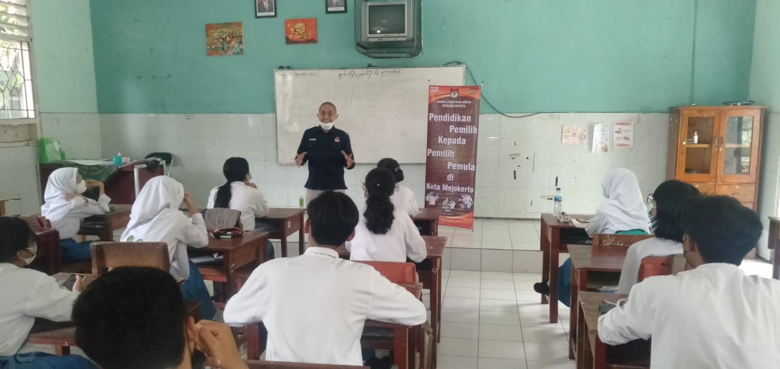 Kota Mojokerto – Tim sosialisasi KPU Kota Mojokerto kembali melanjutkan rangkaian kegiatan sosialisasi calon pemilih pemula di SMAN 2 Kota Mojokerto, Senin (14/2). Kali ini tim yang terdiri dari Muhammad Zahroni, Divisi Sosdiklih Parmas dan SDM didampingi Budi Santoso, Staf PPNPN Subbag Umum menyambangi kelas XI IPS 2. Sama halnya degan kegiatan sebelumnya, sosialisasi edisi keenam ini kemnbali hanya diikuti separuh dari jumlah siswa. Meski demikian, hal tersebut tidak mengendurkan semangat KPU Kota Mojokerto untuk memberikan pendidikan demokrasi bagi calon pemilih pemula. Dalam penyampaian sosialisasi, selain menyampaikan materi umum tentang demokrasi dan pemilu, Zahroni juga mengenalkan sedikit istilah-istilah penting dalam tahapan pemilu. Paparan tim sosialisasi mendapat respon positif dari para siswa, terlebih saat tim membagikan souvenir bagi para siswa yang aktif bertanya dan menjawab. Sementara itu, guru pndamping mengungkapkan rasa senangnya karena para siswa mendapat ilmu yang berharga selain yang sudah mereka dapatkan melalui mata pelajaran PPKn. Kerjasama dengan SMAN 2 Kota Mojokerto ini berlangsung selama tiga bulan dan sudah dimulai sejak awal Januari 2022. (sam)