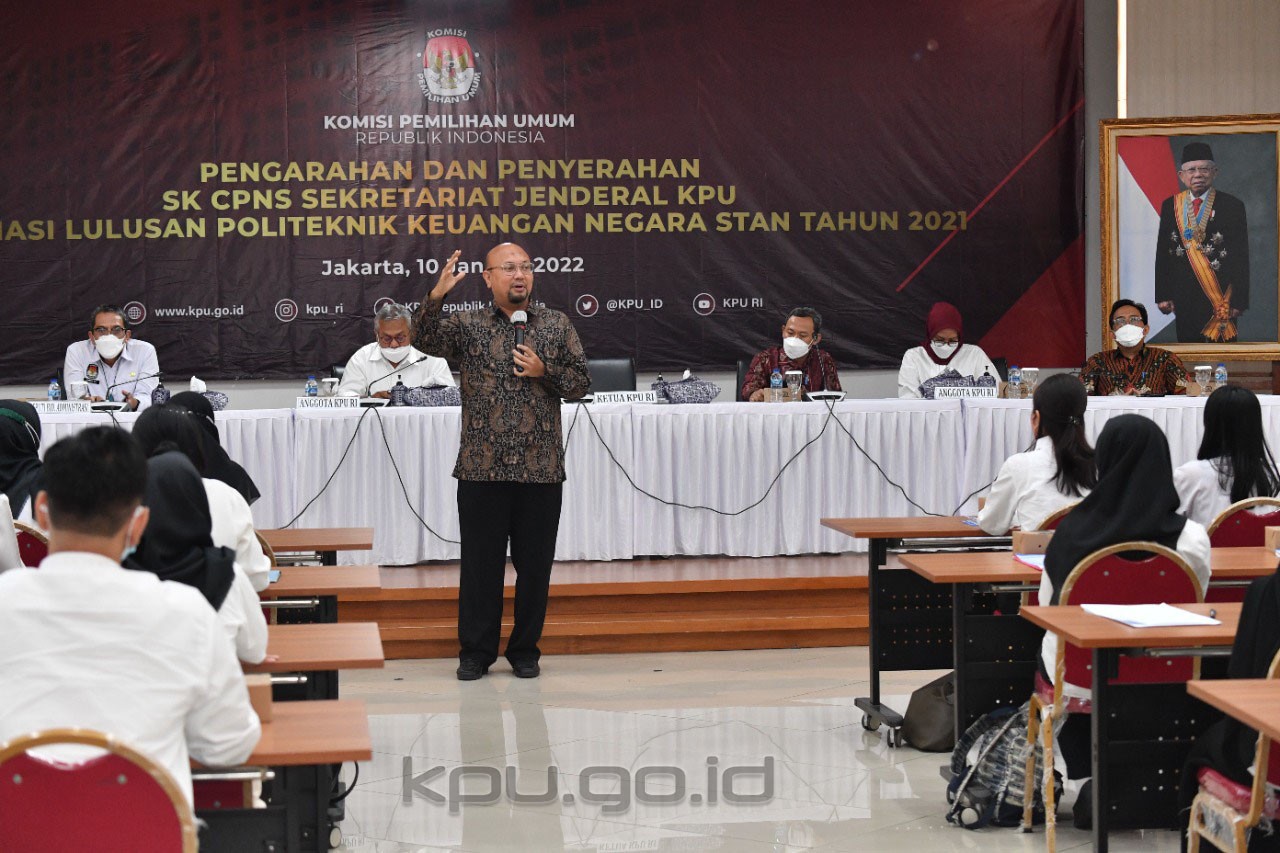 Sementara itu, Nanik Karsini, Sekretaris KPU Provinsi Jawa Timur dalam arahannya menyampaikan selamat kepada 420 tenaga PPNPN yang pada hari ini telah menerima SK. 420 personil PPNPN itu tersebar di 38 satker KPU di Jawa Timur termasuk KPU Provinsi Jawa Timur. Pada kesempatan yang sama, Nanik menekankan pentingnya penandatanganan Perjanjian kinerja selain sebagai komitmen, PK juga menjadi dasar penyusunan Sasaran Kinerja Pegawai (SKP ) tahun 2022. Diakhir arahannya, Nanik sangat berharap agar KPU Kab/Kota lebih giat dan tertib administrasi sehingga tujuan lembaga dapat tercapai. (sam)