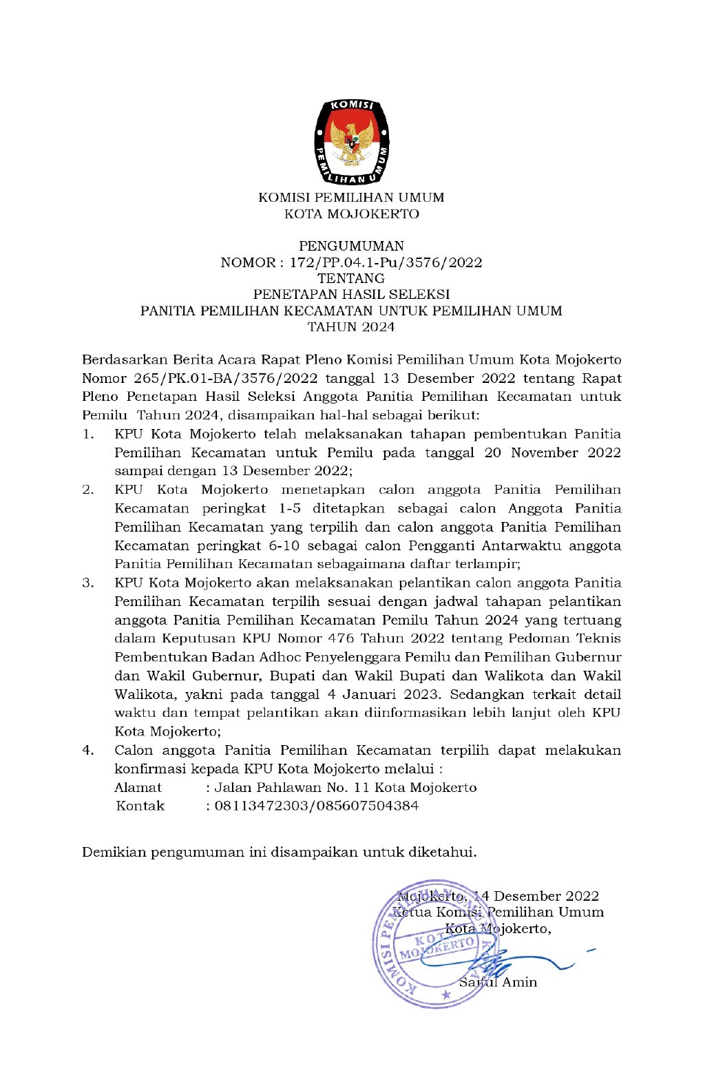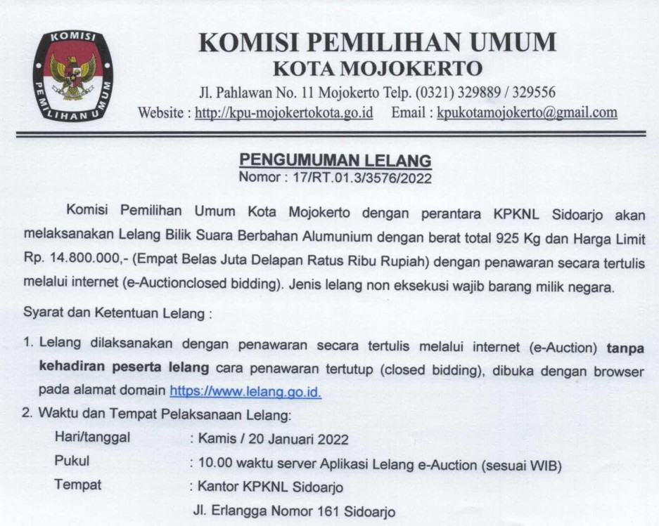 kota-mojokerto.kpu.go.id- Komisi Pemilihan Umum (KPU) Kota Mojokerto membuka pendaftaran untuk anggota badan adhoc Panitia Pemungutan Suara (PPS) untuk Pemilu 2024 .