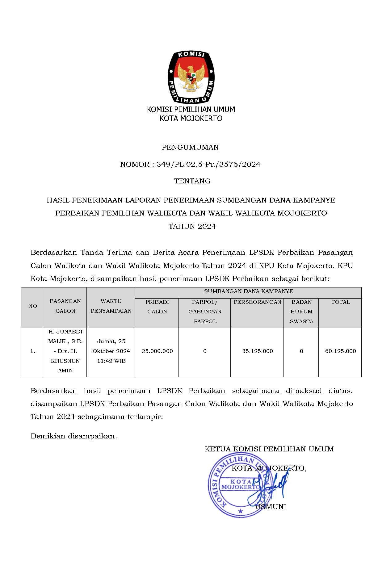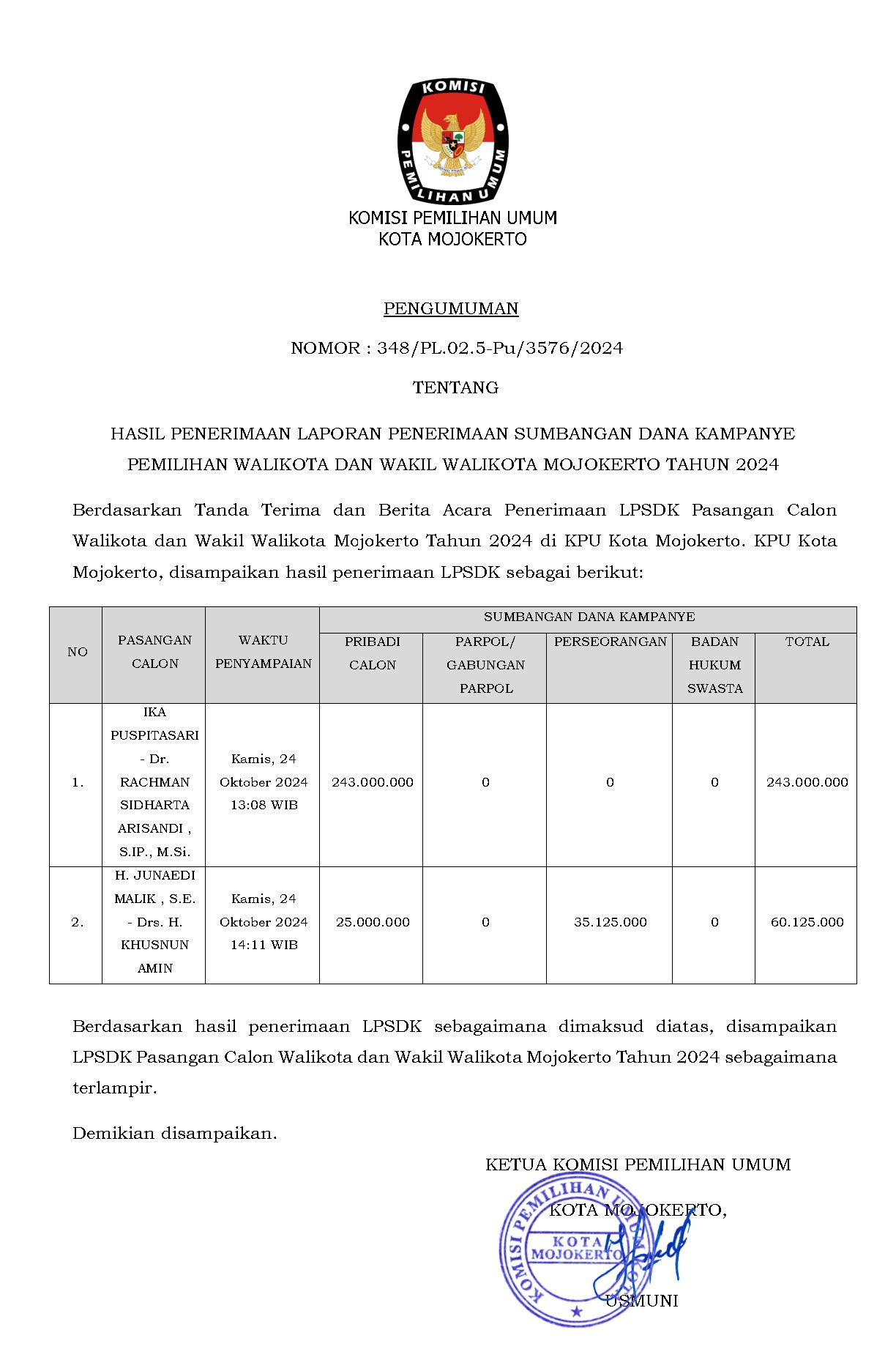 Pengumuman LPSDK Pasangan Calon Walikota dan Wakil Walikota Mojokerto Tahun 2024 Jumat, 25 Oktober 2024 08:00 80 Berikut disampaikan Pengumuman LPSDK Calon Walikota dan Wakil Walikota Mojokerto Tahun 2024. Unduh/lihat disini Baca Selengkapnya
